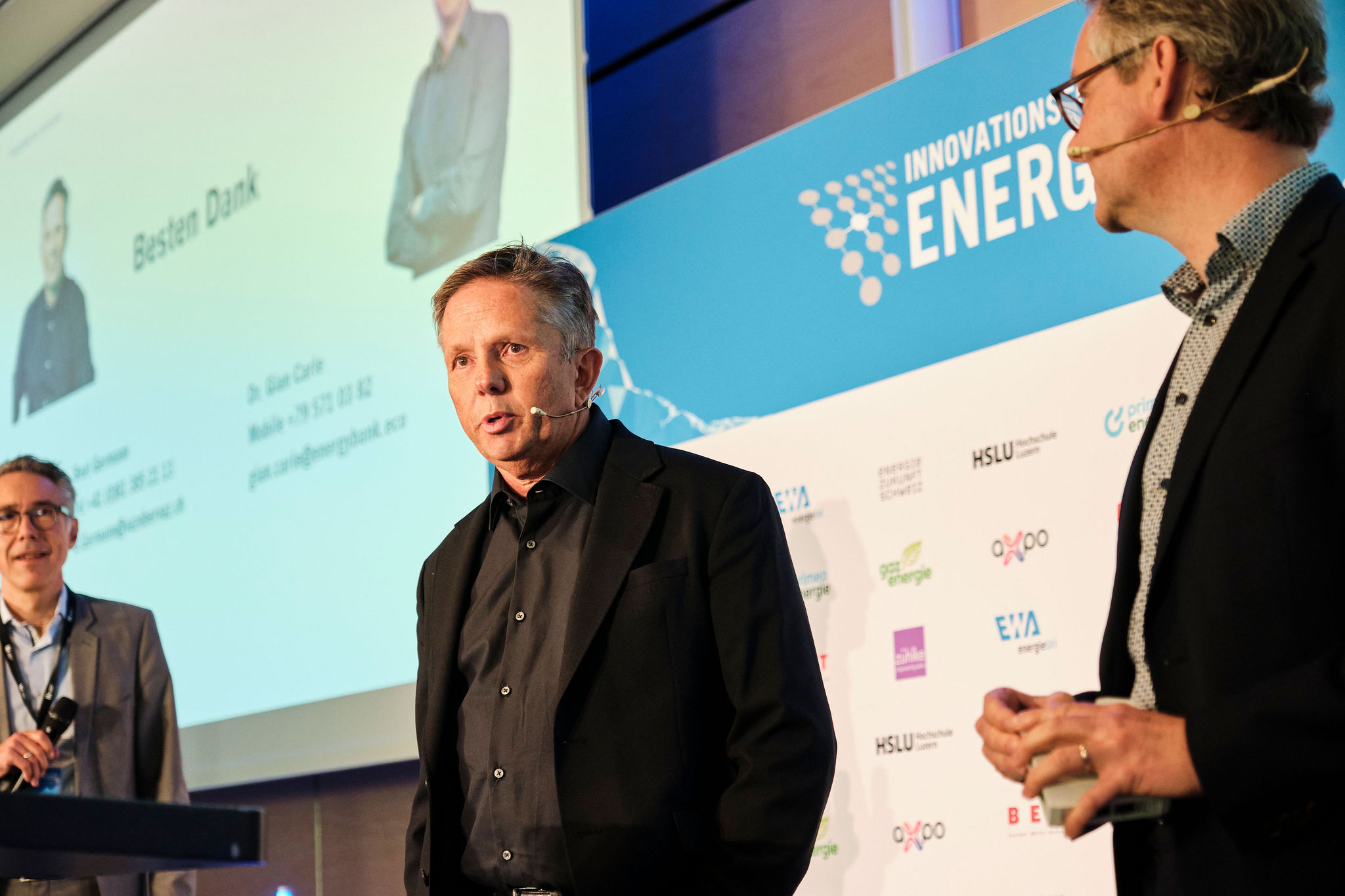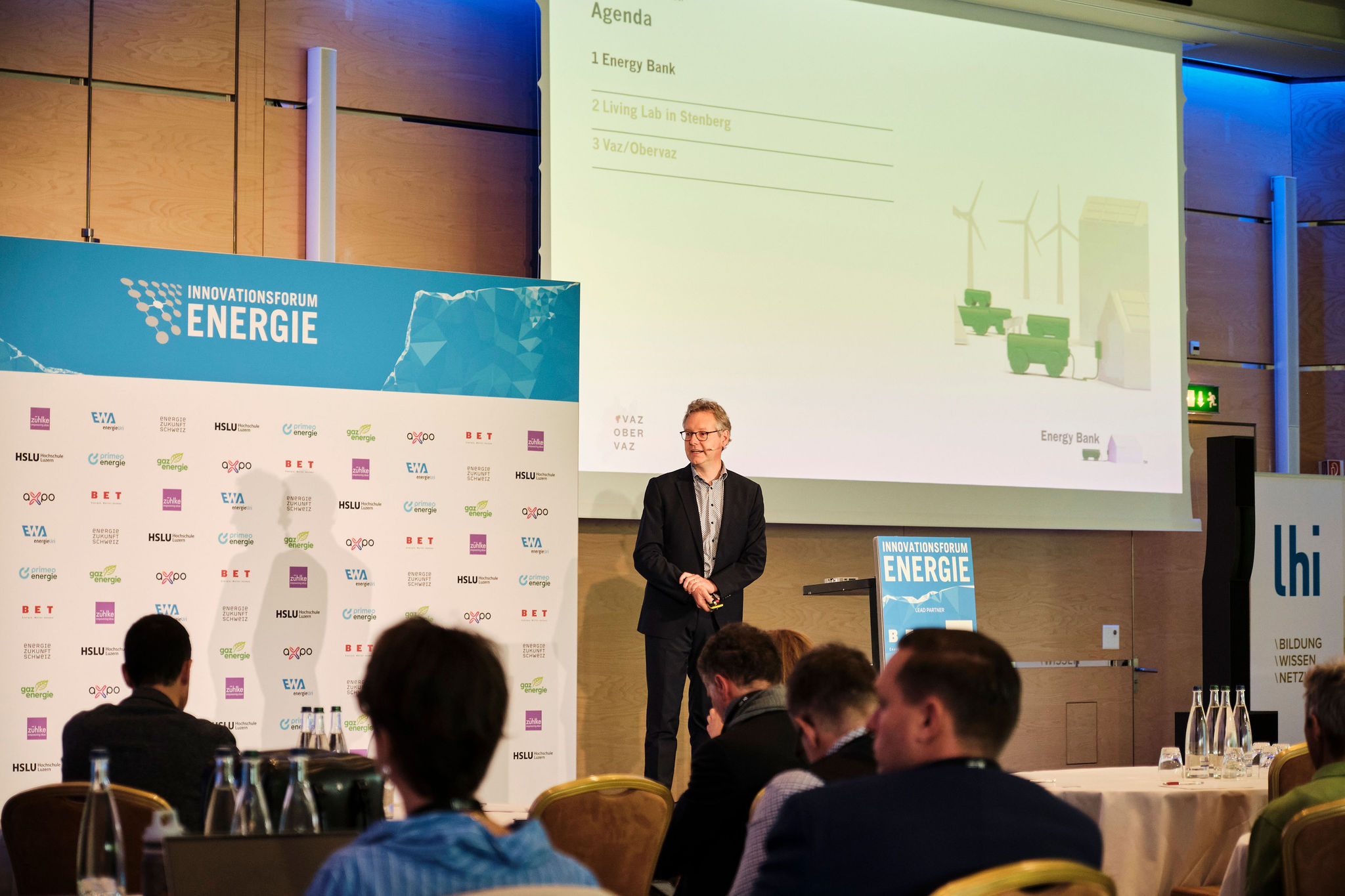 Mit der Energybank demonstriert Gian Carle ein intelligentes, cloudbasiertes System, das via bidirektionales Laden und Flexibilitätsnutzung optimierte Netzstabilität mit deutlicher Kostensenkung verbindet. Ob für Gemeinden oder Immobilien: Die Amortisation erfolgt oft in wenigen Jahren. Das System schafft Raum für neue Geschäftsmodelle im Verteilnetz. Ein funktionierender Beweis in Schweden: Im «Living Lab Stenberg» schliessen sich 6 Gebäude, 4 Photovoltaik-Anlagen und 1 Erdsonden-Wärmepumpe mit übergrossen Wassertanks, 4 stationären Batterien und 8 bidirektional ladefähigen E-Autos zusammen.