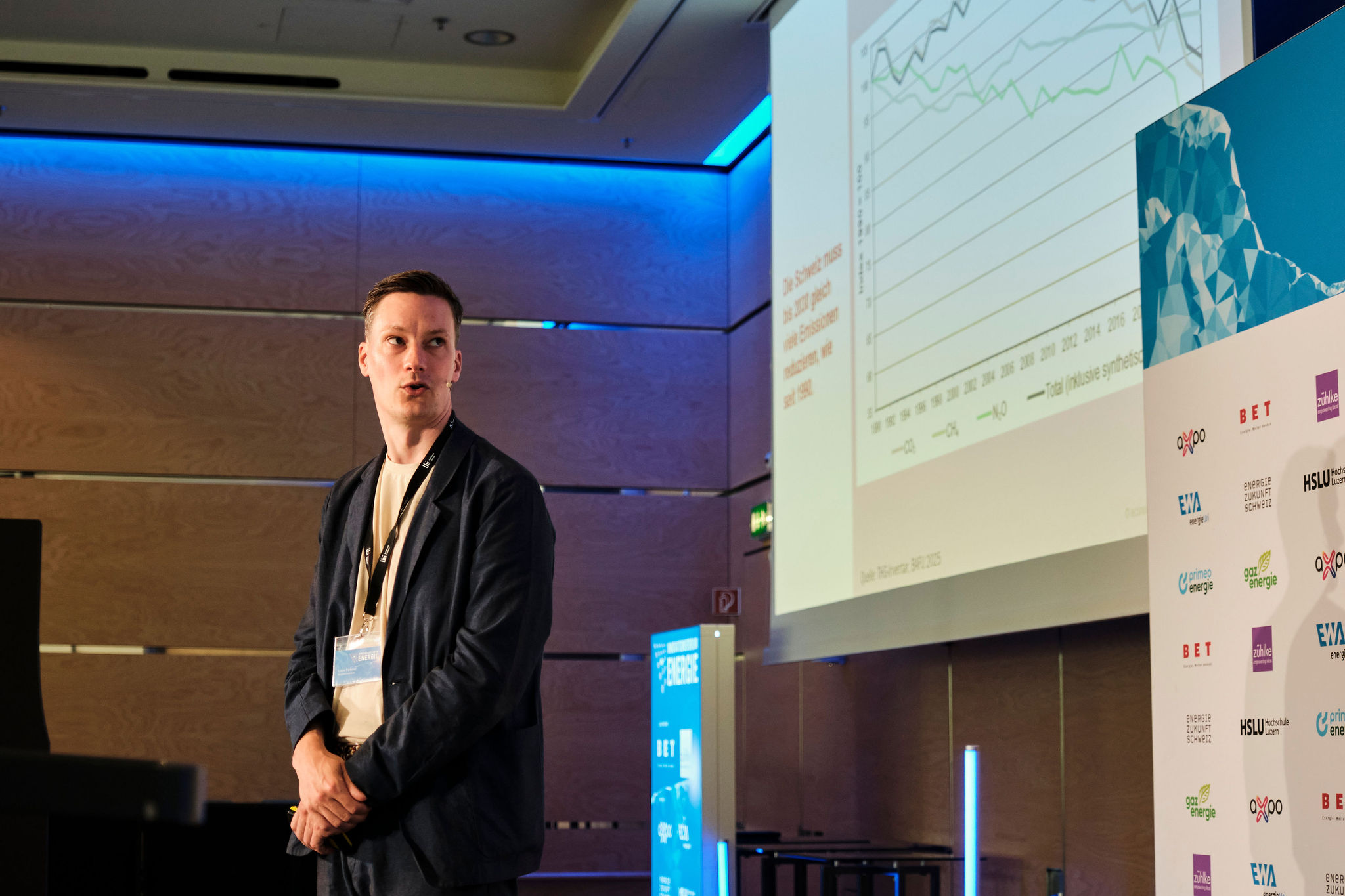 Lukas Federer stellt die Bedeutung erneuerbarer Moleküle wie Wasserstoff oder Biogas für die Industrie in den Fokus. Die Elektrifizierung stösst bei Prozesswärme an ihre Grenzen. Es braucht technologische Offenheit, internationale Anbindung und verlässliche Rahmenbedingungen, um Industrieprozesse klimafreundlich und wirtschaftlich zugleich zu gestalten.